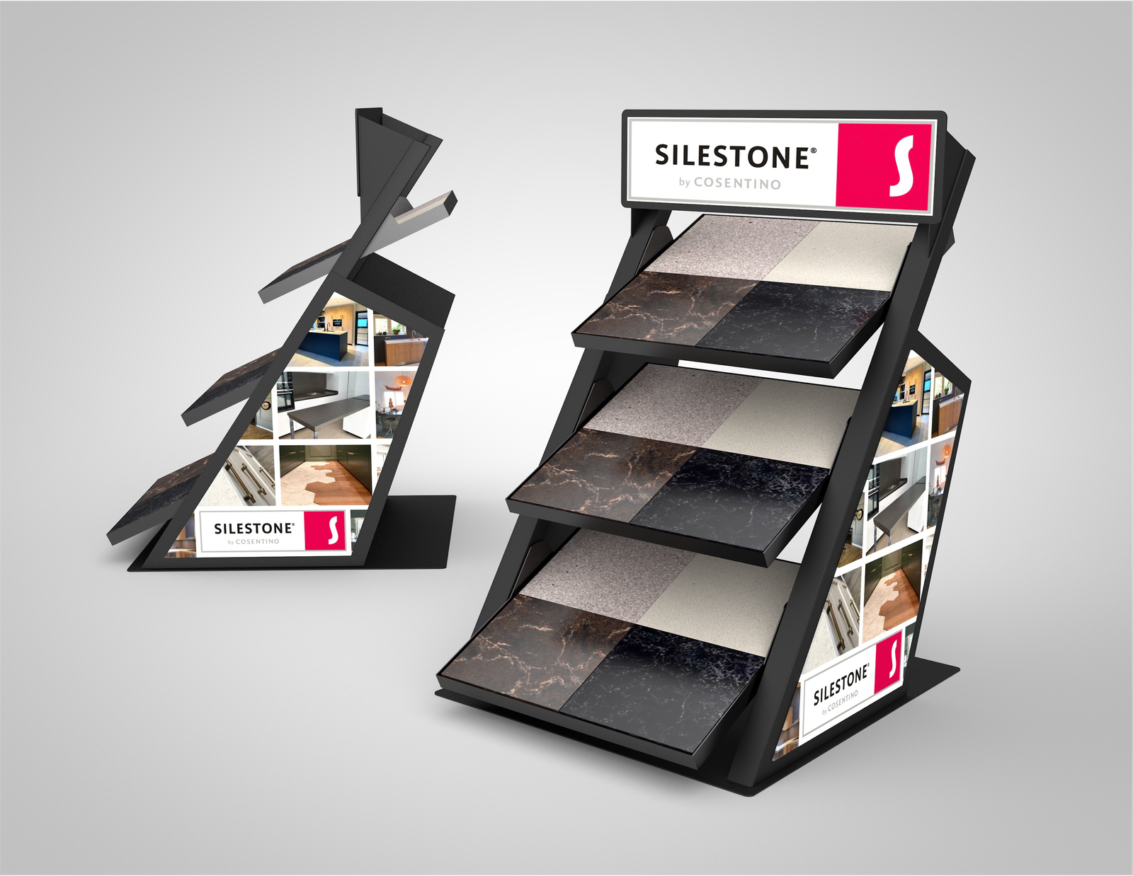 Precision-engineered from powder-coated metal, this display balances structural integrity with visual appeal. Concord Displays selected materials and construction methods specifically to withstand high-traffic retail environments while maintaining SileStone’s brand standards. Expert POP engineering translates brand guidelines into structurally sound, shippable displays.